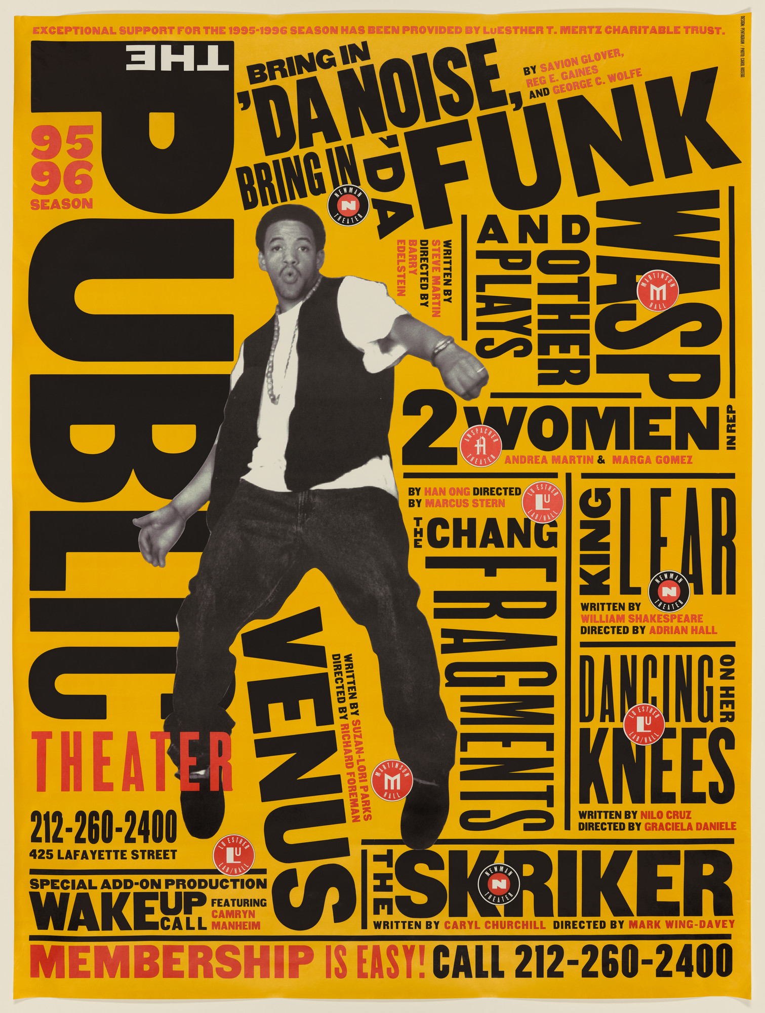 Paula Scher’s posters for The Public Theater in New York during the 1990s and 2000s completely changed how theater could be seen. She used bold typography, bright colors, and a sense of energy that made the posters feel alive and part of the city itself. They didn’t just advertise shows, they grabbed attention and drew people in, reflecting the chaos, excitement, and personality of urban life. That raw, expressive style is why people remember her posters and why they had such an impact.